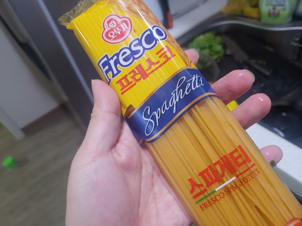 반정도 익은 스파게티면은 물기를 빼고 보관해줍니다.