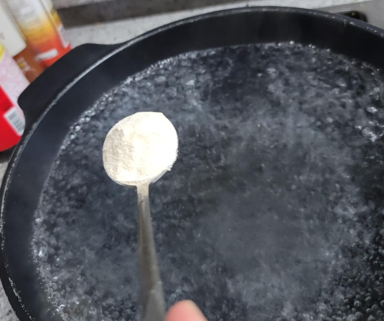 물이 끓어오르면 쌀국수 육수분말을 넣어줍니다.
